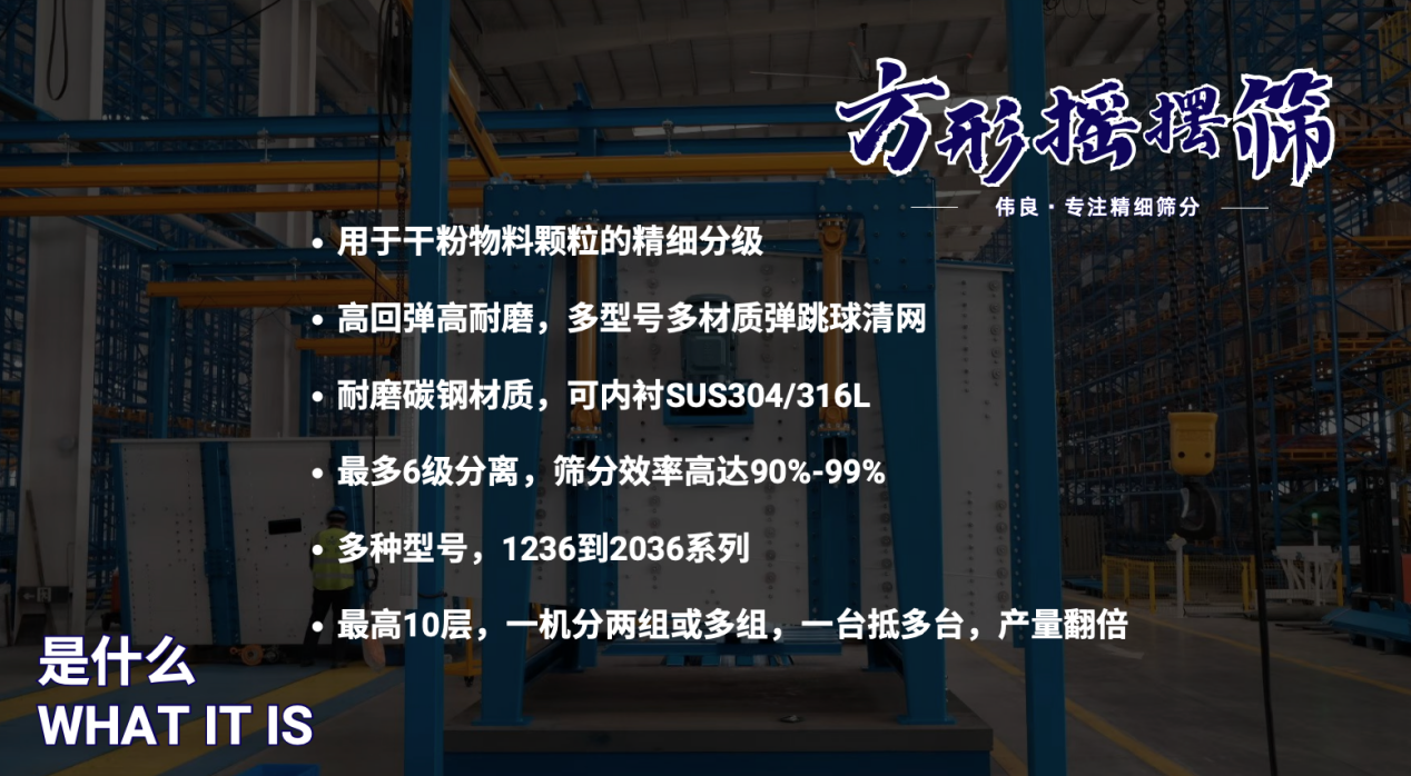 • 然后,經(jīng)過(guò)初步篩選的砂進(jìn)入偉良方形搖擺篩,普遍客戶(hù)會(huì)選擇大的機(jī)型2036型號(hào),6層/8層/或10層,它夠精確地篩選出符合要求的砂粒粒徑范圍,確保顆粒級(jí)配符合工程標(biāo)準(zhǔn)。